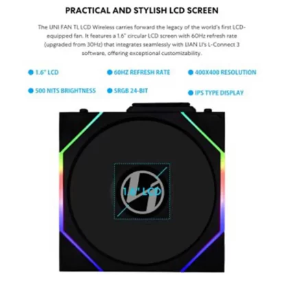 Lian Li Uni Fan TL Wireless LCD 120 Reverse Blade...
