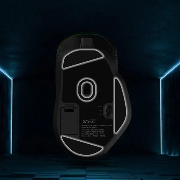 XPG ALPHA WIRELESS Gaming Mouse can be connected in the 2.4G wireless mode, offering high-performance with low-latency connection quality. Bluetooth mode is also available for low-energy battery-saving mode.