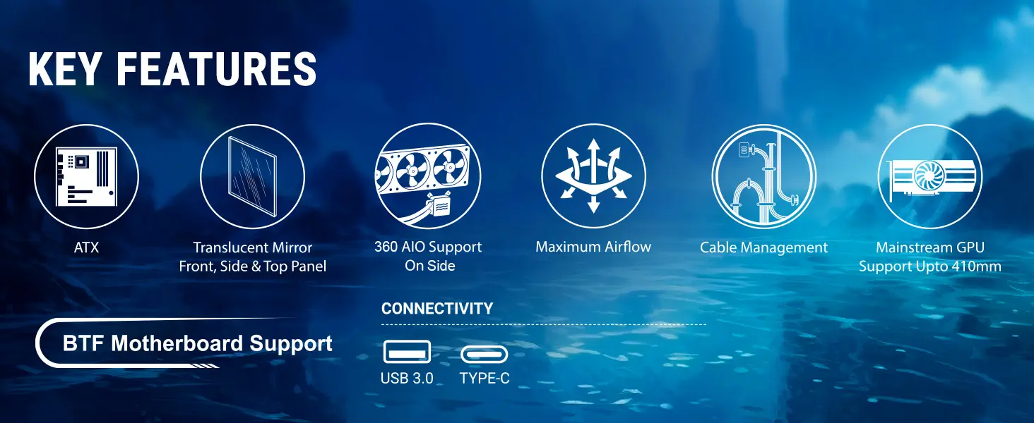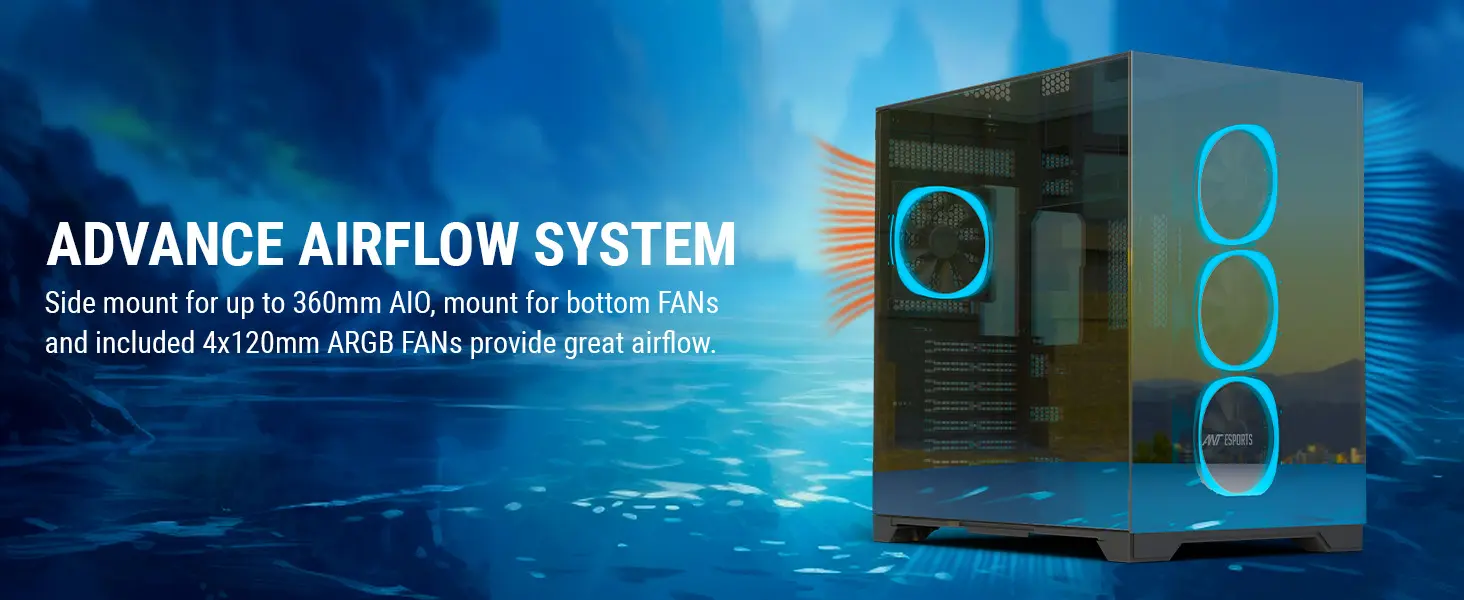 Ant Esports Crystal Mirror Mid Tower ATX Cabinet Black