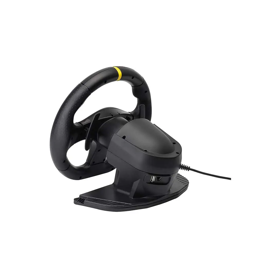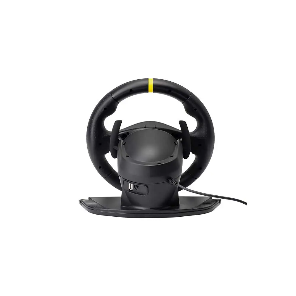 Experience the thrill of high-speed racing like never before with the Ant Esports GW180 Corsa Racing Wheel and Pedal Set. This impressive racing wheel is your ticket to a truly immersive driving experience.Equipped with a D-Pad and eleven customizable buttons, it puts control at your fingertips, allowing you to fine-tune your racing performance. The ergonomically placed pedal shifters provide a realistic feel as you shift through the gears, while the 270-degree lock-to-lock turning capability ensures precise handling.