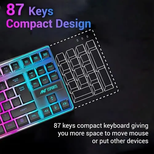 Ant Esports MK720 Pro V2 Wireless TKL RGB Gaming Membrane Keyboard, Backlit Wireless – Long Lasting Rechargeable Battery – Quite Water-Resistant Ergonomics Keyboard – PC PS5 PS4 Xbox One Mac – Black