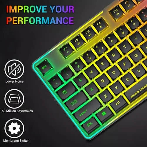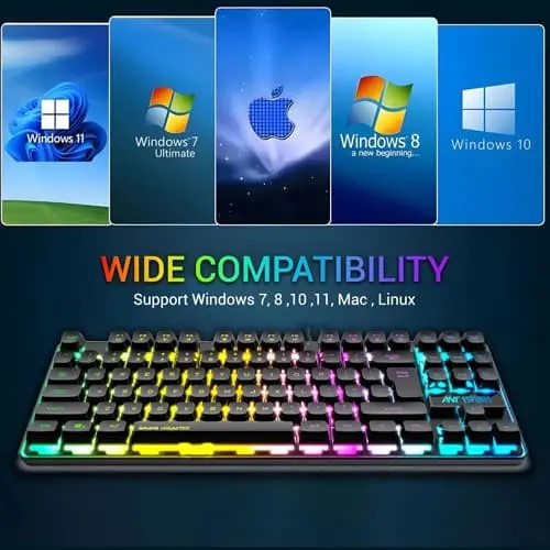 - Stunning Rainbow Backlighting – Bring your desk to life! Choose static or breathing mode, or turn off the lights completely if you prefer. Note: colors are not customizable.