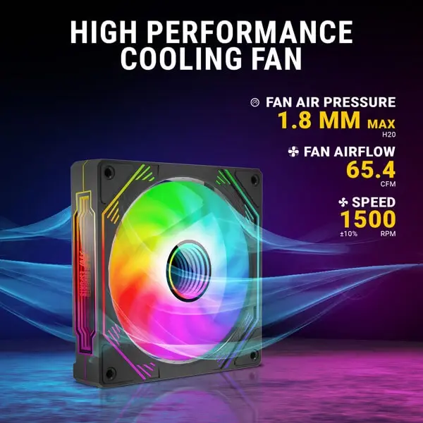 The kit’s ARGB hub, with a capacity for up to six PWM-ARGB devices, enhances versatility. Even if your motherboard lacks an ARGB header, you can still control the effects through your cabinet’s reset button or the provided remote control, offering a hassle-free customization experience. Each fan, operating at an impressive 1500 RPM, generates 65.4 CFM of airflow, making it an ideal choice for high TDP Gaming PC builds where efficient cooling is crucial.