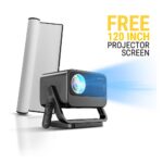 7. What’s in the Box: Projector, Remote, Manual, HDMI cable, Power Cable, 1X3 in AV cable, Lens cap & Projector screen