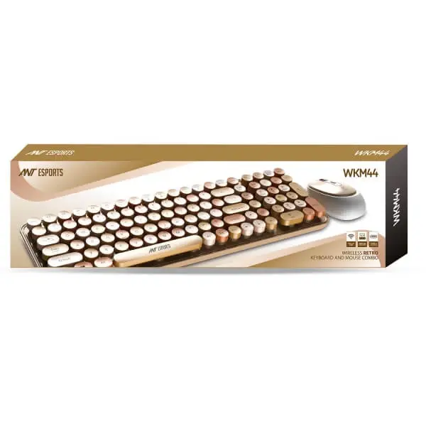 Ant Esports WKM44 Wireless Retro Keyboard and Mouse Combo – Brown