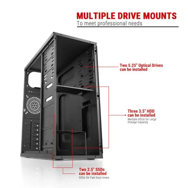 Ant Value X1 is an ATX Mid Tower Cabinet. It comes with pre-installed one LED fan for efficient cooling.