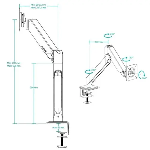 X1-3D Desk Mount Gas Spring Monitor Arm