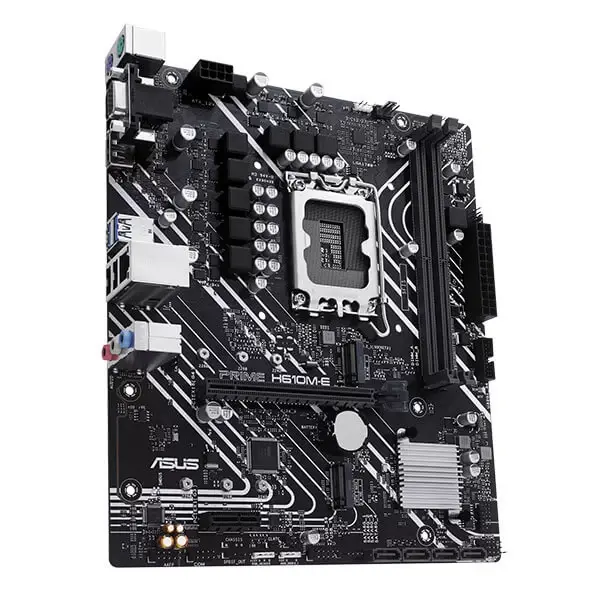 Asus Prime H610M-E is a MATX motherboard with Intel Socket LGA1700 that supports 14th, 13th and 12th gen, PCIe 4.0, DDR5, Comprehensive Cooling technique, has Aura sync RGB lighting feature.Dual M.2 slots. SATA 6gbps, COM header, PCIe 4.0