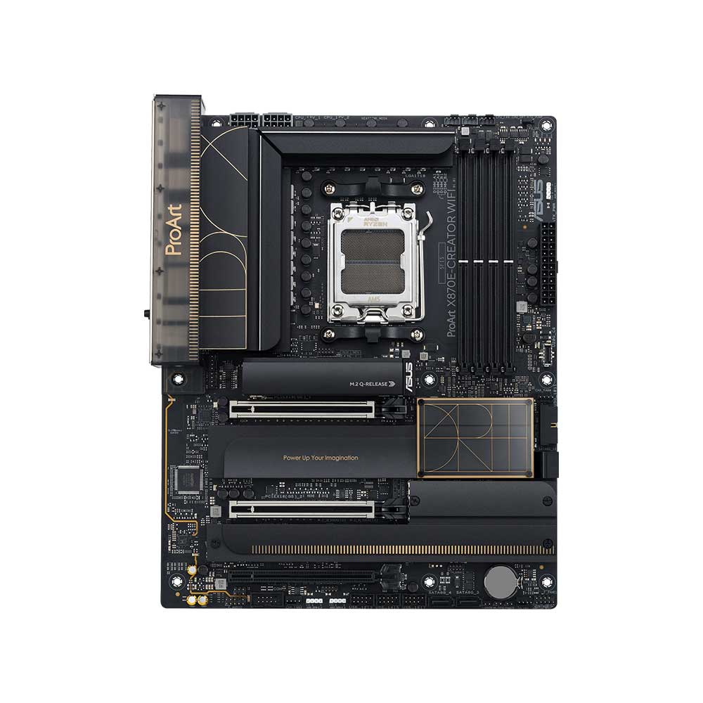 The Asus ProArt X870E-Creator WiFi empowers creators of all levels by maximizing the performance of the latest AMD Ryzen™ 9000, 8000 and 7000 Series processors with 16+2+2 team power stages, DDR5 slots, PCIe® 5.0 and lightning-fast connectivity including dual USB4®, 10G and 2.5G Ethernet, and WiFi 7.