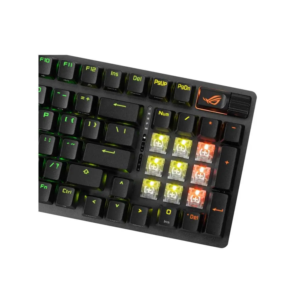 - Hot-swappable switches:Â Pre-lubed NX Snow linear switches and ROG NX Storm clicky switches with walled stem design to enhance keystroke stability and are tuned for great acoustics
