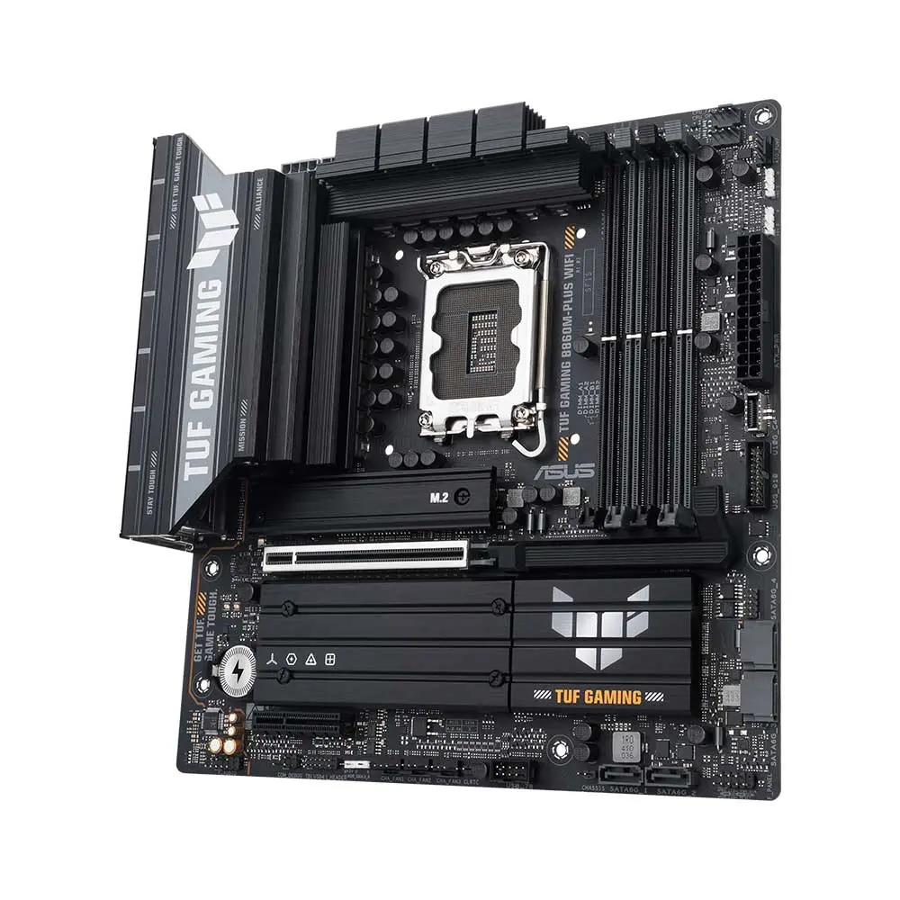 Asus TUF GAMING B860M-PLUS WIFI takes all the essential elements of the latest Intel® Core™ Ultra Processors (Series 2) and combines them with game-ready features and proven durability. Engineered with military-grade components, an upgraded power solution and a comprehensive cooling system, this motherboard goes beyond expectations with rock-solid and stable performance for marathon gaming. TUF GAMING motherboards also undergo rigorous endurance testing to ensure that they can handle conditions where others may fail. This platform delivers the power and connectivity that advanced AI PC applications demand.