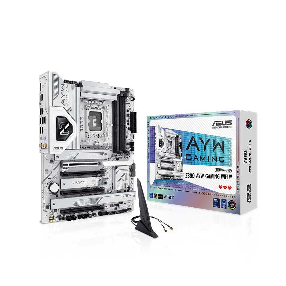 ASUS Z890 AYW Gaming WiFi W motherboard is expertly engineered to unleash the full potential of the latest Intel® Core™ Ultra Processors (Series 2). Boasting a robust power design, comprehensive cooling solutions and intelligent tuning options, the Z890 AYW GAMING WIFI W motherboard provides users and PC DIY builders with a range of performance optimizations via intuitive software and firmware features. It’s designed to be Advanced AI PC-ready, offering the power and connectivity needed for demanding AI applications.
