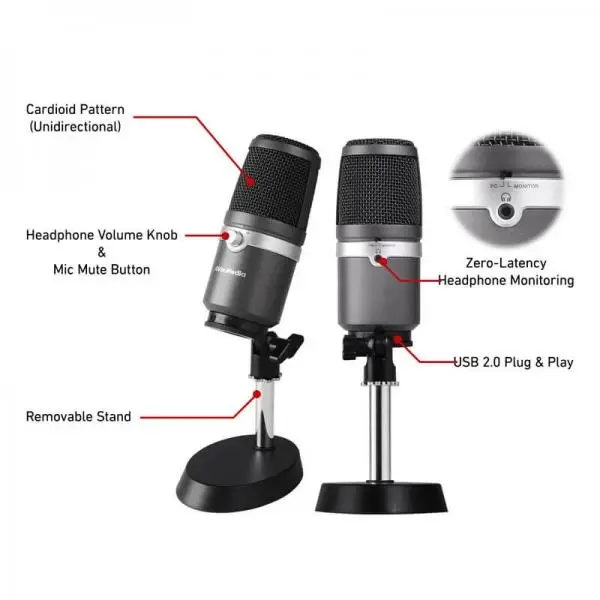 What better way to captivate your audience then with studiolike crisp vocals! Bring them into your world with high quality audio and make your message come across loud and clear. The USB Microphone AM310 your choice that will help you find your voice!