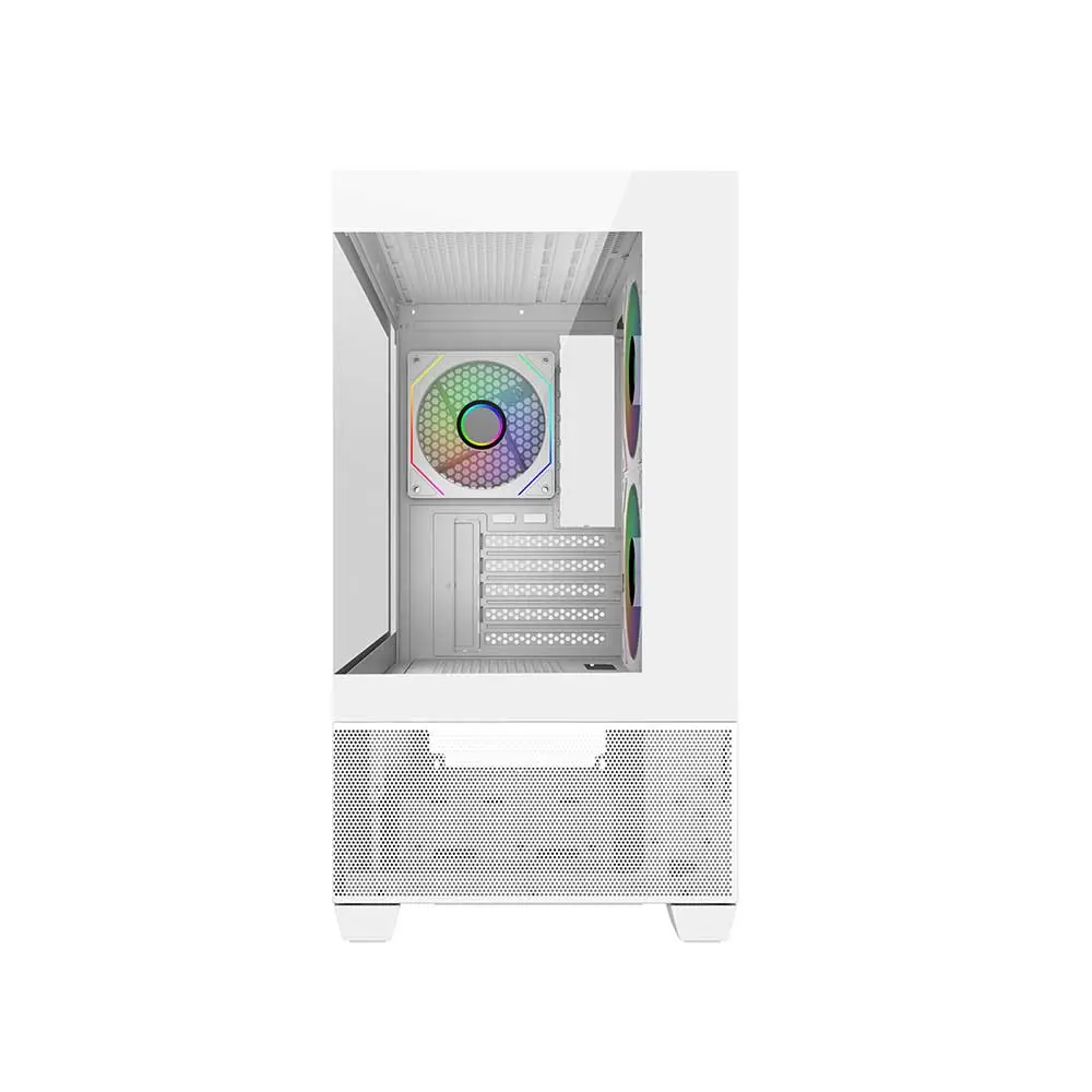 The Elite 490 delivers a clean, modern aesthetic in a space-efficient mATX form factor. Featuring dual tempered glass panels on the front and side, it offers a wide, uninterrupted view of your build’s lighting and hardware. Despite its compact size, the Elite 490 supports full-sized cooling solutions with up to 360mm radiator compatibility and room for 9 fans—perfect for minimalist setups that demand performance.