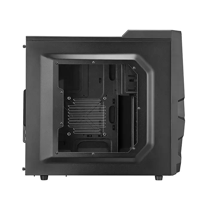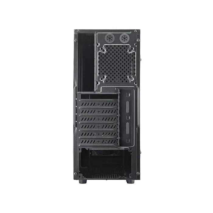 - Supports up to 4 fans. One silent 120mm red LED fan behind the front panel is included