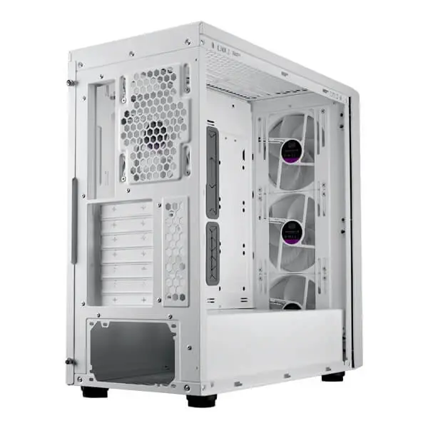 Cooler Master MasterBox 600 Argb White is a High Performance Mid Tower Case with Space for a 420mm Radiator and a 410mm GPU, Supports E-ATX/ATX/M-ATX/ITX Motherboard, 3x 140mm SickleFlow140 ARGB PWM, 1x 120mm CF120 ARGB Fans Pre-Installed
