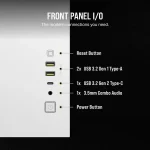 Corsair 2500X Airflow is a M-ATX motherboard supporting cabinet having dual chamber with white color design, Fits up to 9x 120mm fans, including ports are USB 3.2 Gen 2 Type-C Port, 2x USB 3.2 Gen 1 Type-A ports, and a combination audio/microphone jack.