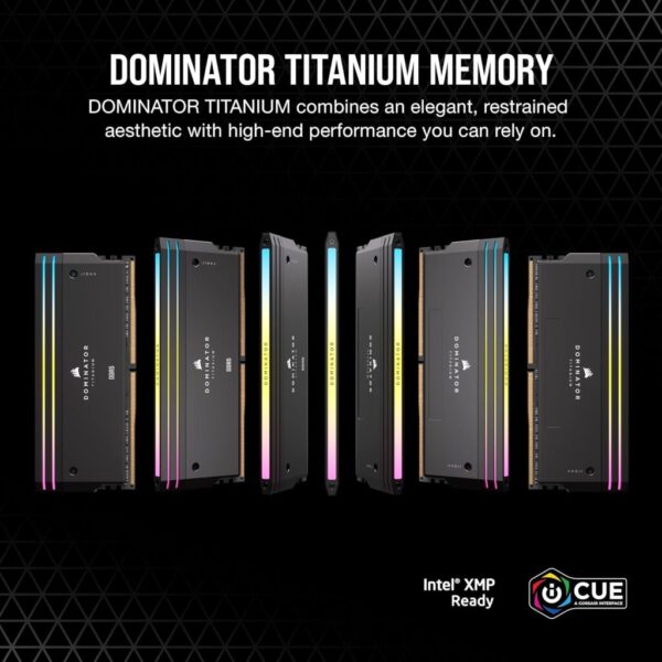 Corsair Dominator Titanium Rgb 96Gb DDR5 Memory combines clean, refined styling with superior die-cast aluminum construction and advanced lighting design for a premium memory experience. Optimized for Intel® systems.