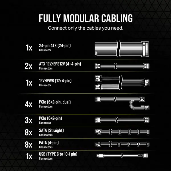 With three EPS12V connectors and fully modular cabling, HXi Series platinum power supplies have every connection needed to power today’s most demanding PC upgrades now and into the future, including the latest generation of power-hungry graphics cards and processors.