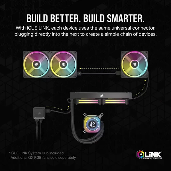 The iCUE LINK ecosystem uses a single connector for all iCUE LINK devices.