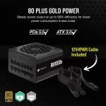 CORSAIR RMe Series Fully Modular Low-Noise Power Supplies with ATX 3.0 and PCIe 5.0 compliance provide quiet, reliable power with 80 PLUS Gold efficiency to a wide variety of PC builds.