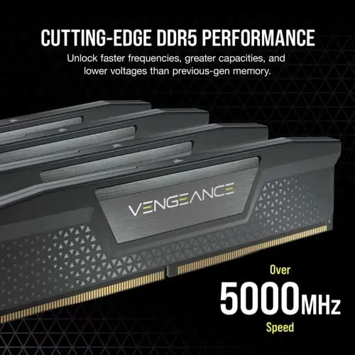 CORSAIR VENGEANCE DDR5, optimized for Intel® motherboards, delivers higher frequencies and greater capacities of DDR5 technology in a high-quality, compact module that suits your system.