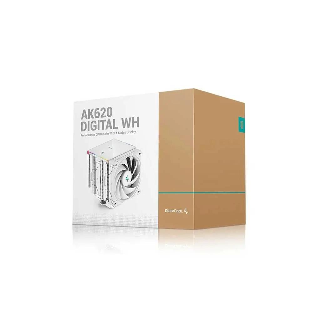 The era of digital air coolers has arrived, and DeepCool is proud to introduce the Deepcool AK620 DIGITAL WH. Everything you loved about the original AK620 WH, but with a sleek low-profile magnetic status display and ARGB LED strips.