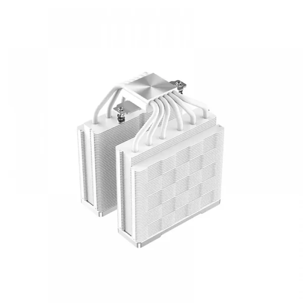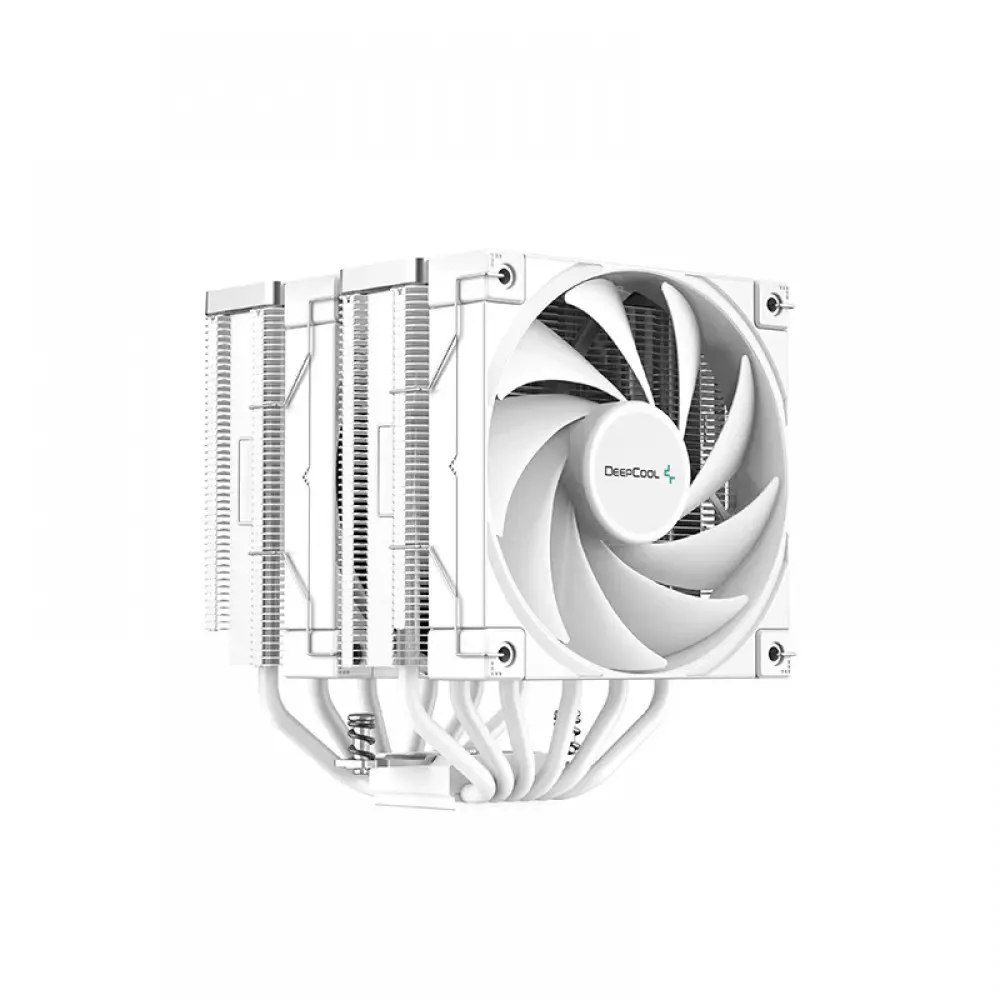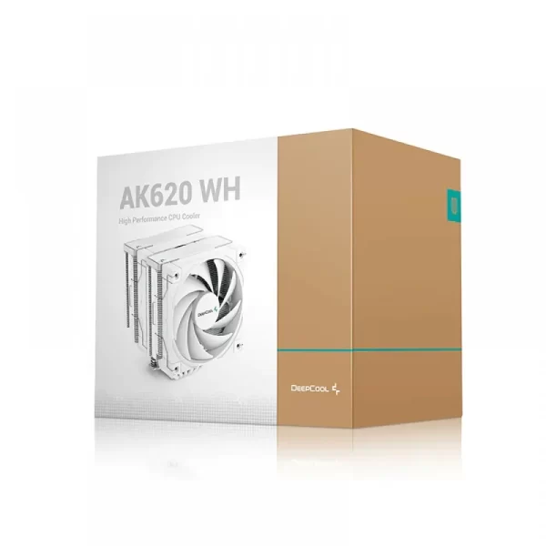 Achieve dominant cooling and silent efficiency with the DeepCool AK620 WH High Performance CPU Cooler equipped with six copper heat pipes stacked with a dense dual-tower fin array and two 120 FDB fans.