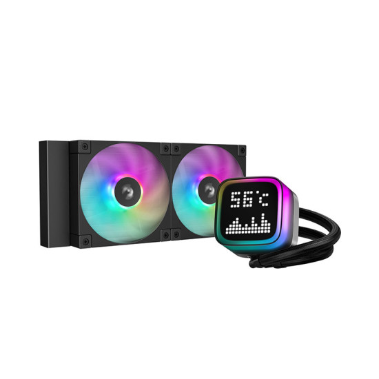 The LP240 is the newest addition to DeepCool’s extensive line-up of chart-topping 5th generation liquid coolers. The transparent ARGB pump bezel encases a unique dot-matrix screen with some fun and useful features.