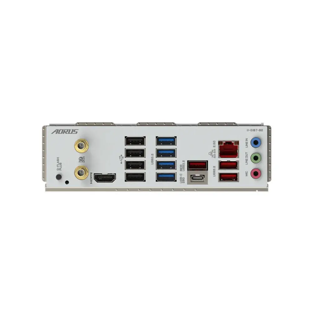 2 x SMA antenna connectors (2T2R) 1 x HDMI port 4 x USB 3.2 Gen 1 ports 4 x USB 2.0/1.1 ports 3 x USB 3.2 Gen 2 Type-A ports (red) 1 x USB Type-C® port, with USB 3.2 Gen 2×2 support 1 x RJ-45 port 3 x audio jacks |