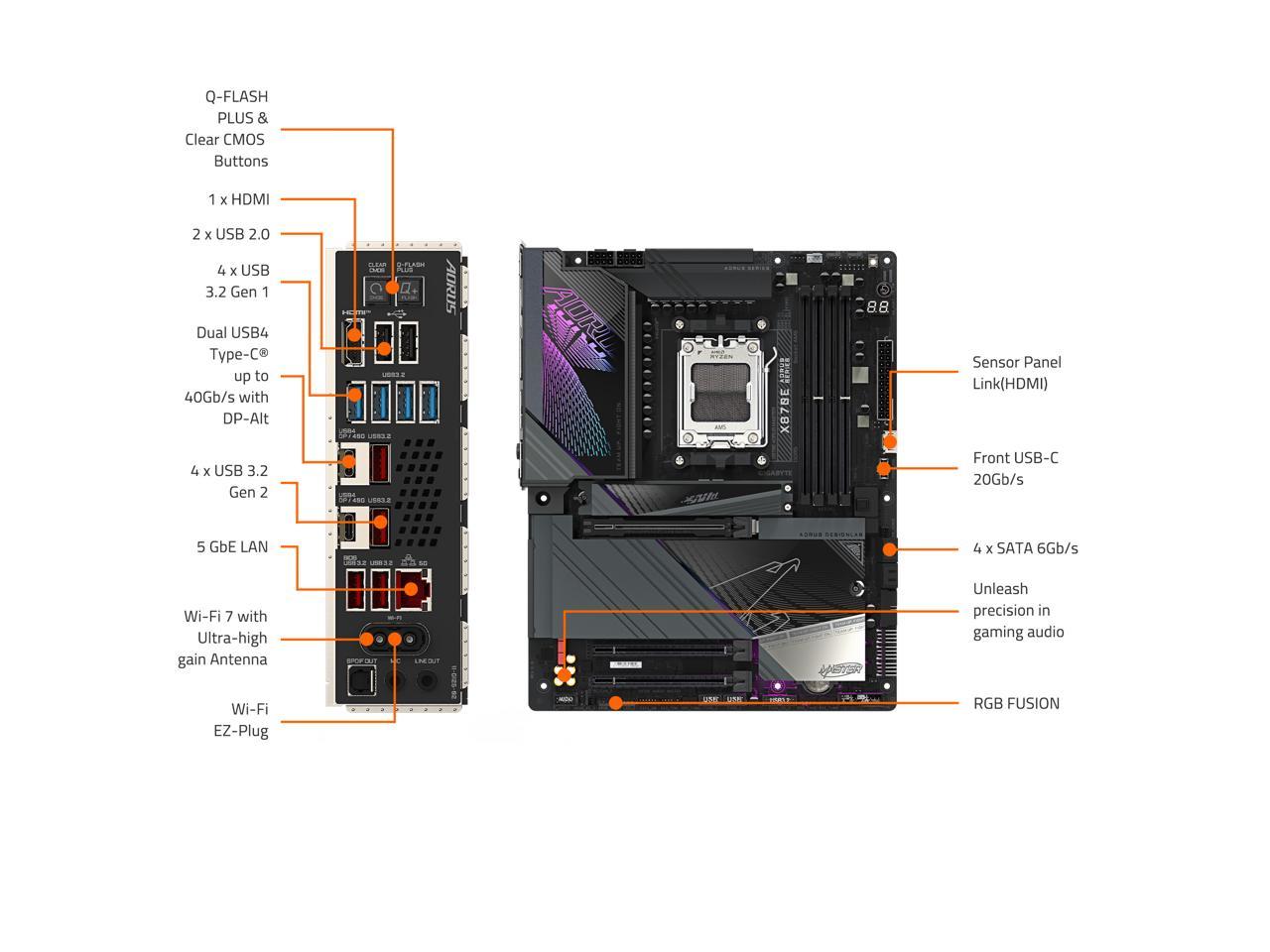 GIGABYTE X870E AORUS MASTER AM5 LGA 1718, ATX, DDR5, 4x M.2, PCIe 5.0, USB4, Wi-Fi 7, 5GbE LAN, EZ-Latch