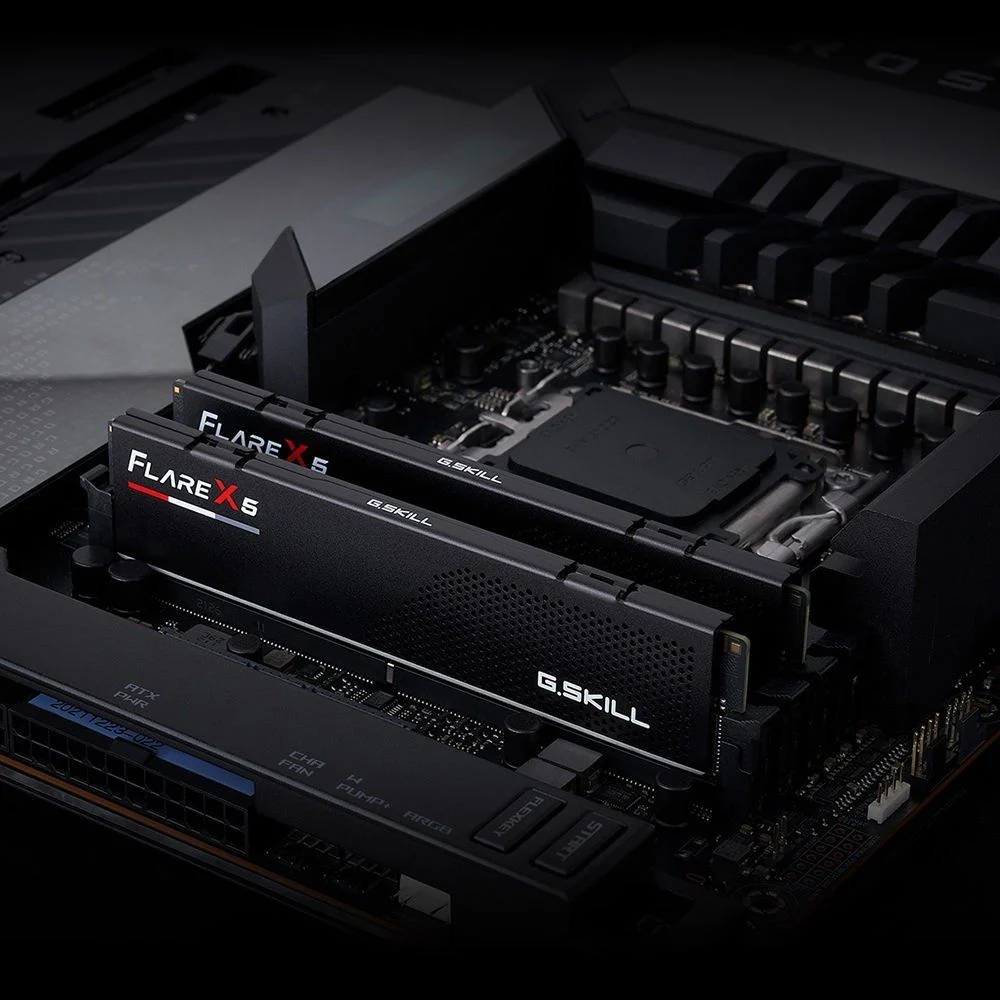 Built from high-quality hand-scanned DDR5 DRAM ICs, Flare X5 memory kits are built for high performance in a low-profile design. Featuring AMD EXPO (Extended Profiles for Overclocking) profiles, Flare X5 enables simple one-step memory overclocking via BIOS on supported motherboards.