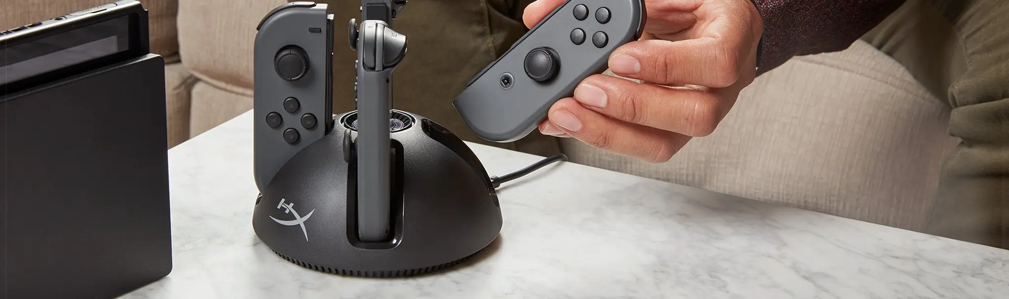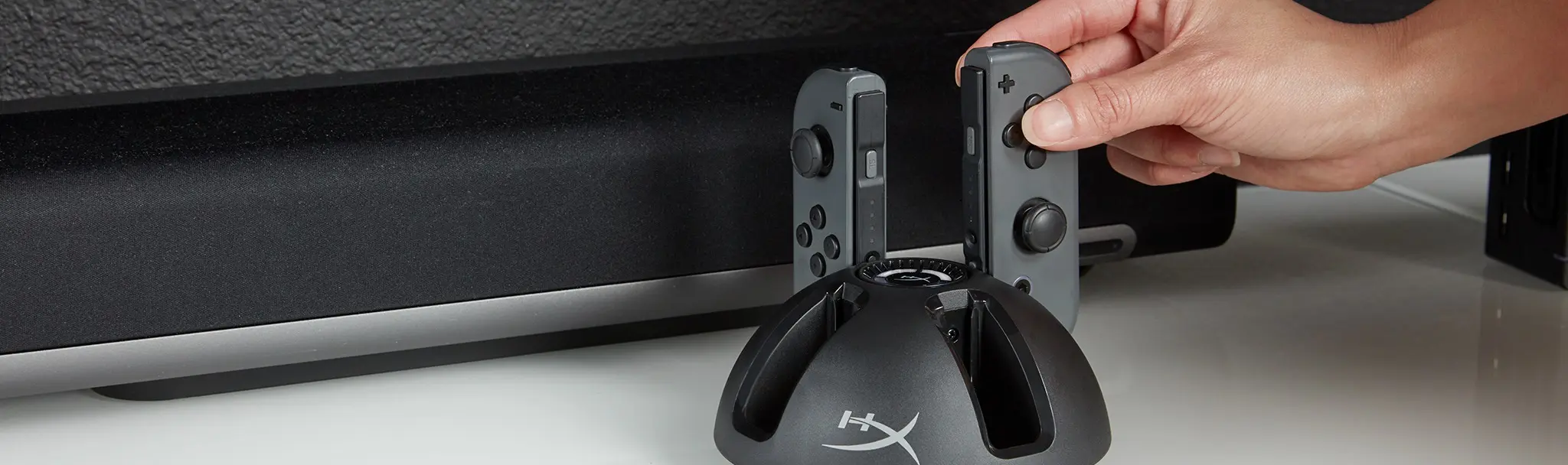 HyperX ChargePlay Quad conveniently connects directly to the Nintendo Switch™ dock via USB to keep your Joy-Con™ controllers fully charged and ready for action.