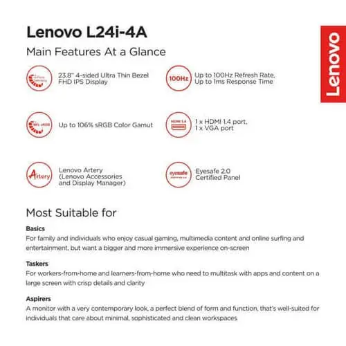 Lenovo L24i-4A 60.45cms (23.8) Monitor