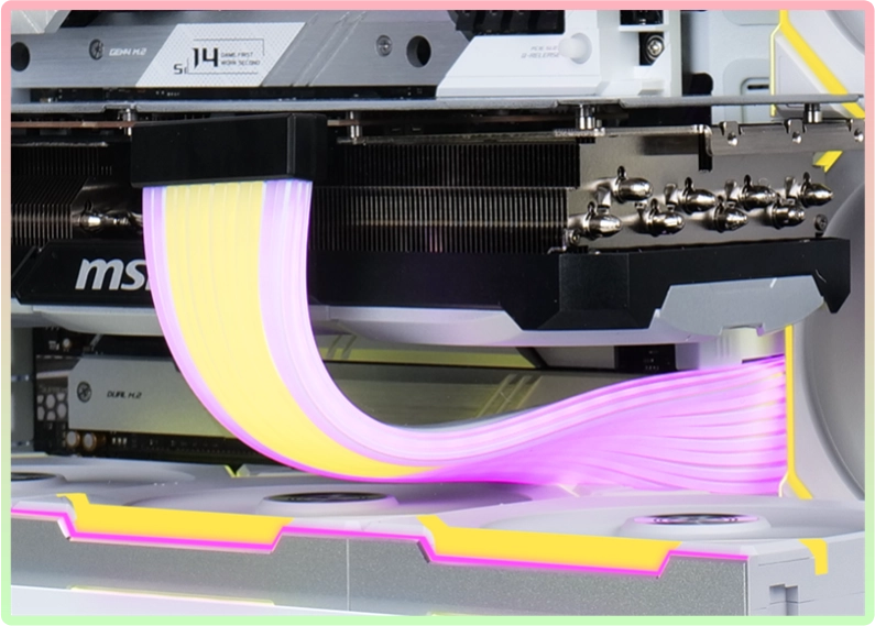 The thoughtful connector design, along with its reversible feature, allows users to easily install the Strimer in the desired orientation while being compatible with graphics cards from all different brands.