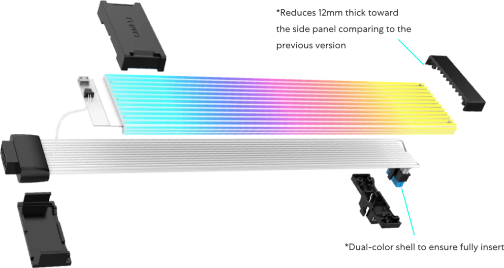 This improved light guide design has been meticulously refined to provide a concealing effect for the extension cable. Additionally, the longer light guide strips in the new version create a more streamlined and polished appearance by removing dead zones with no LEDs. This change ensures a cleaner and more cohesive look, contributing to a sleek and professional aesthetic that perfectly complements the overall design of your PC setup.