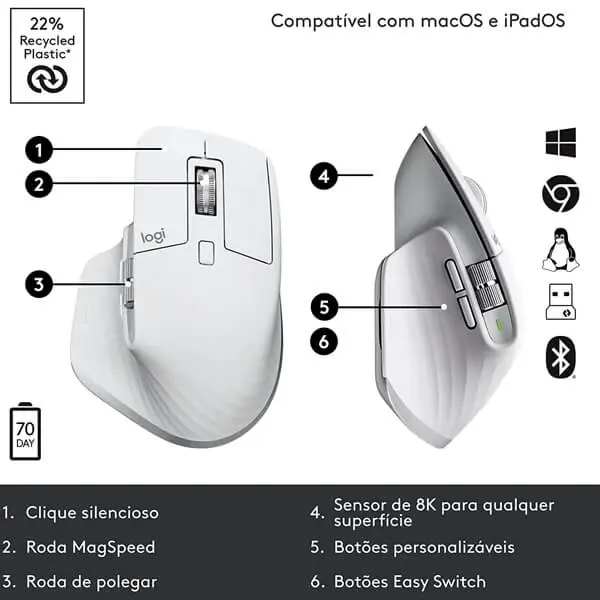 Logitech MX Master 3S – an iconic mouse remastered. Feel every moment of your workflow with even more precision, tactility, and performance, thanks to Quiet Clicks and an 8,000 DPI track-on-glass 4 mm minimum glass thickness. sensor.