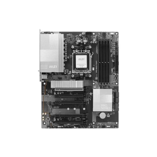 Msi Pro B840-P WiFi Motherboard offers a simple design with a harmonious silver color scheme that perfectly matches both white and black PC builds. It is engineered with many exclusive features of MSI, a true Wi-Fi 7 with EZ Antenna, 2.5G LAN, and PCIe 4.0 M.2 with EZ M.2 Shield Frozr II, ready for the AMD Ryzenâ„¢ 9000 series processors.