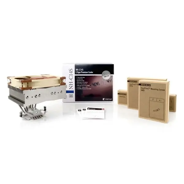 Successor to the award-winning NH-C14, the NH-C14S is an elite class top-flow CPU cooler that is extremely efficient, highly compatible and remarkably adjustable. Thanks to its deeper fin stack and the renowned NF-A14 PWM fan, the single fan NH-C14S provides similar quiet cooling performance to its dual fan predecessor while being even more versatile: With the fan installed on top of the fins, the cooler is compatible with RAM modules of up to 70mm height. With the fan installed underneath the fins, the total height of the cooler is only 115mm, making it suitable for use in many HTPC cases. At the same time, the new offset layout allows it to clear the top PCIe slot on most µATX and ATX motherboards. Topped off with the trusted, pro-grade SecuFirm2™ multi-socket mounting system, Noctua’s proven NT-H1 thermal compound and full 6 years manufacturer’s warranty, the NH-C14S is a premium quality top-flow solution for the highest demands.