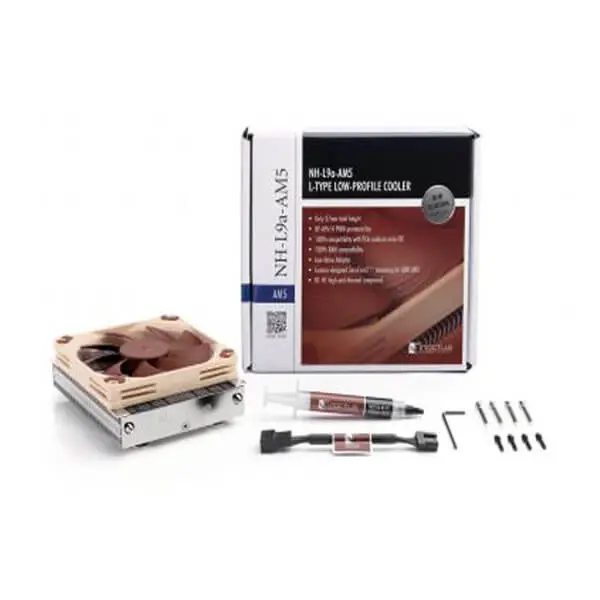 The NH-L9a-AM5 is the latest, AM5-specific revision of Noctua’s award-winning NH-L9a low-profile CPU cooler for AMD Ryzen based HTPCs and Small Form Factor (SFF) systems. At a height of only 37mm, the NH-L9a is ideal for extremely slim cases and, due to its small footprint, it provides 100% RAM and PCIe compatibility as well as easy access to near-socket connectors even on tightly packed mini-ITX motherboards. The custom-designed SecuFirm2™ mounting system for the AM5 socket makes installation a breeze and, thanks to the highly optimised NF-A9x14 92mm fan that supports fully automatic speed control via PWM, the NH-L9a-AM5 runs remarkably quietly. Topped off with Noctua’s renowned NT-H1 thermal compound, the NH-L9a-AM5 combines everything users have come to expect from Noctua’s larger coolers into a super-compact, premium-quality package for ITX and HTPC builds with AMD AM5 processors.