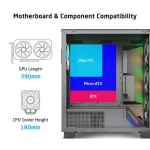 The Included 4x140mm ARGB Fans, and options to mount upto 360mm AIO on top provides a stellar cooling perfromance for the hardware.