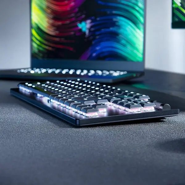 Top-tier performance and durability is more compact than ever with the Razer DeathStalker V2 Pro TKL—a wireless ultra-slim tenkeyless optical keyboard. Featuring low-profile switches and Razer™ HyperSpeed Wireless for ultra-responsive gaming, all housed within a compact, yet incredibly durable build.