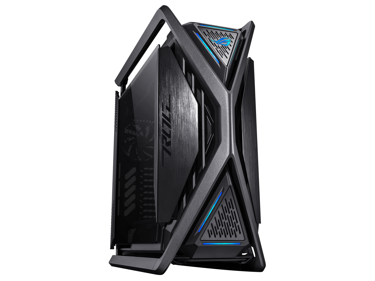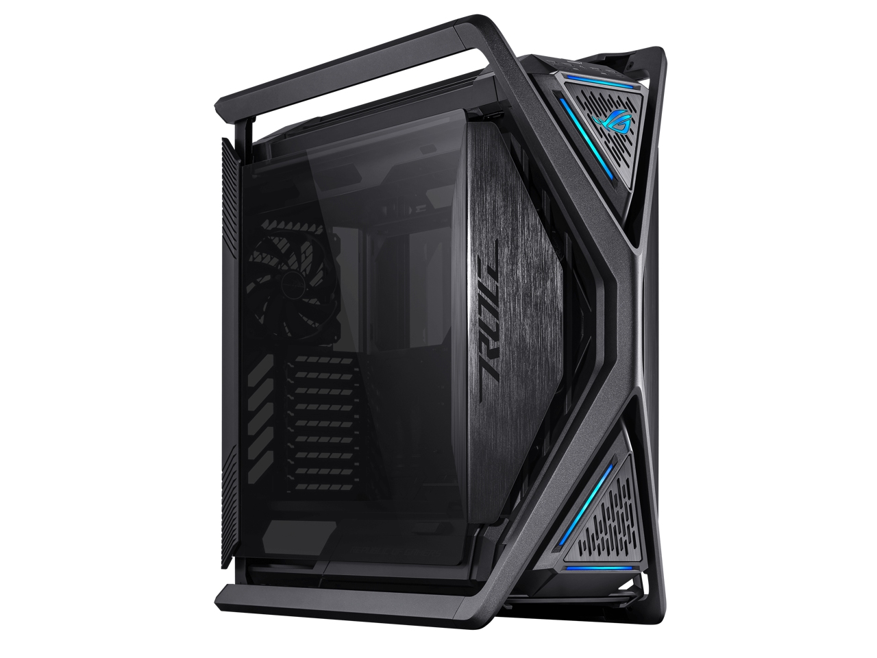 ASUS ROG Hyperion GR701 BTF Edition computer case, ASUS ATX BTF motherboards exclusive support, 420 mm dual radiator support, four 140 mm fans, metal GPU holder, component storage, ARGB fan hub