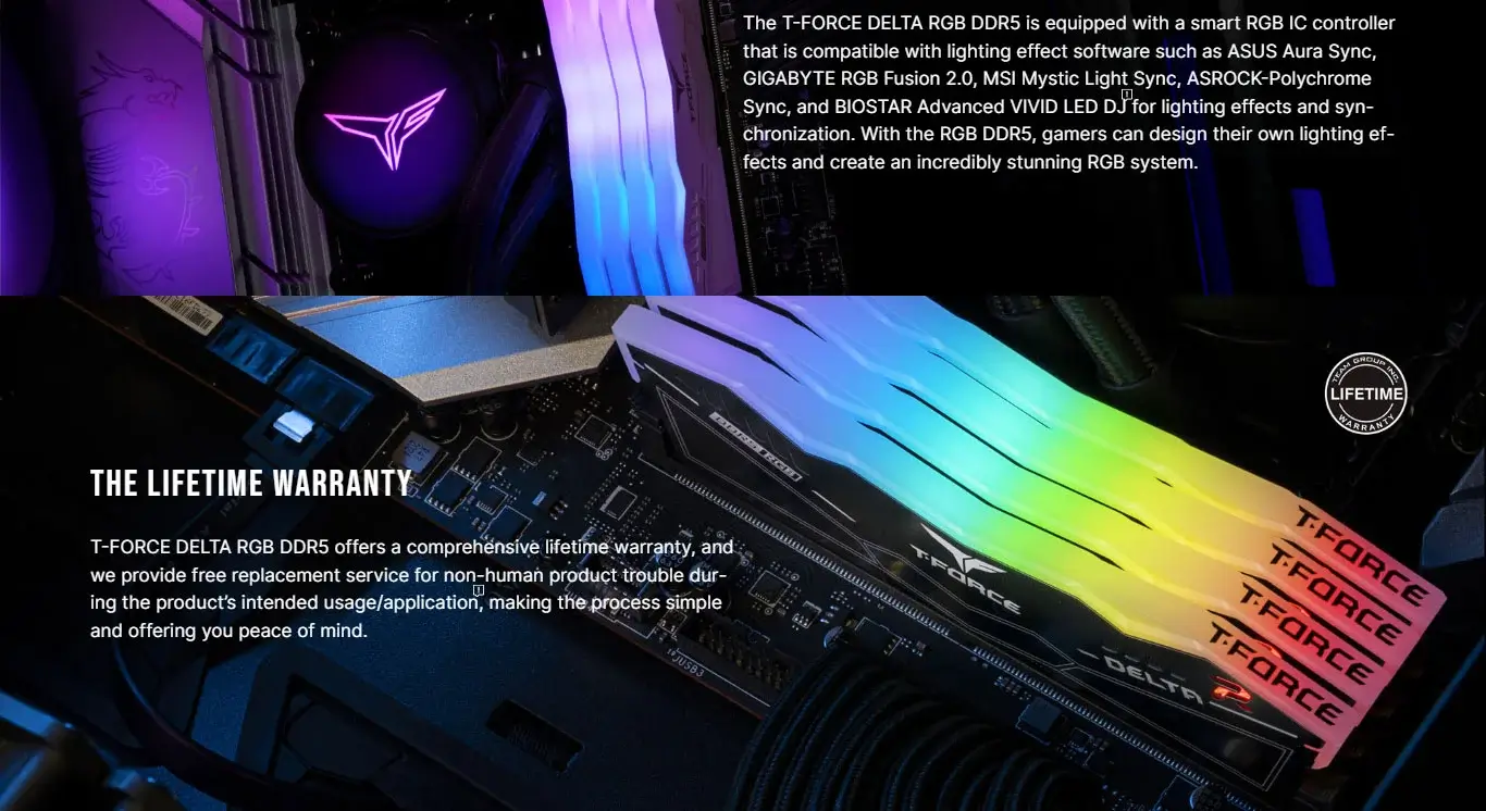 TeamGroup T-Force Delta RGB 32GB (16GBx2) DDR5 7200MHz Desktop RAM White